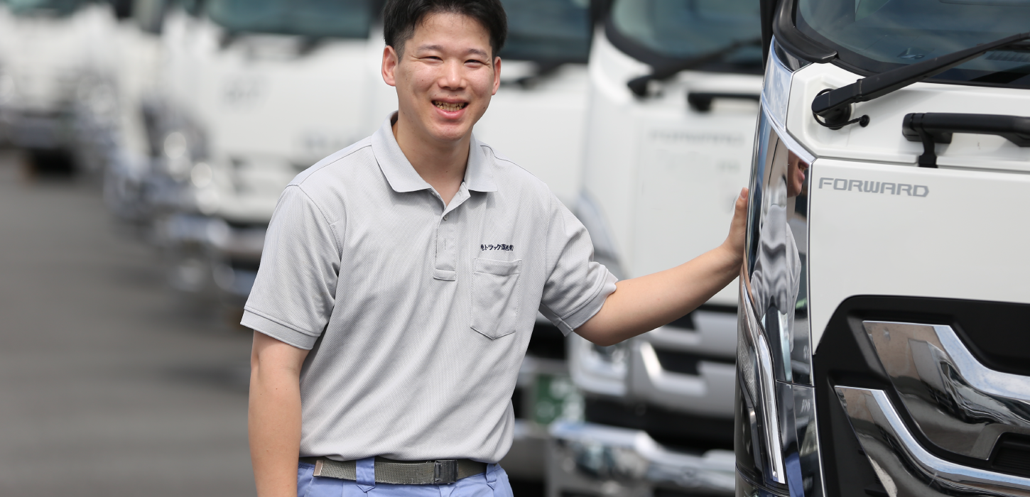 ルート配送の仕事に出会い、「決められたコースをまわる」という安定感に惹かれ入社を決めました。中型免許で4T車を運転することができ、安定した収入が得られるところも魅力に感じました。