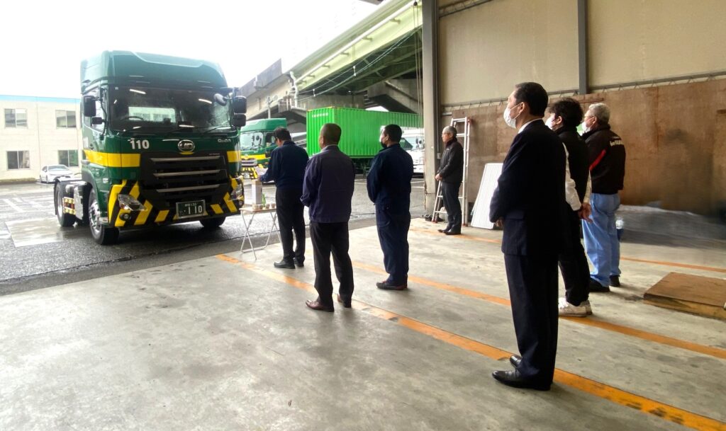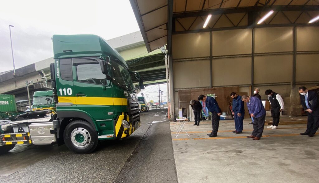 港トラック運送㈱では社長が神主となり安全祈願をします。